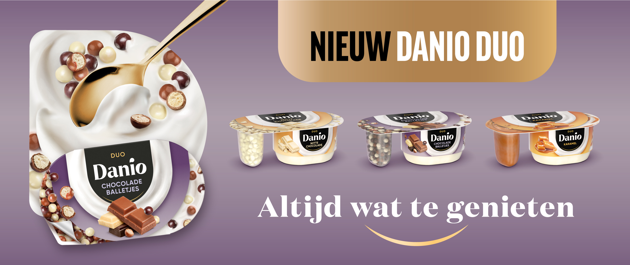 Misschien is je wat opgevallen… Onze Danio producten zien er net iets anders uit. De verpakking heeft een nieuw jasje gekregen waarbij de ingrediënten centraal staan. Zo zou je (als het goed is) je favoriet nog makkelijker kunnen vinden. Ook al zien we er anders uit, Danio smaakt nog steeds nét zo lekker als dat je van ons gewend bent!
